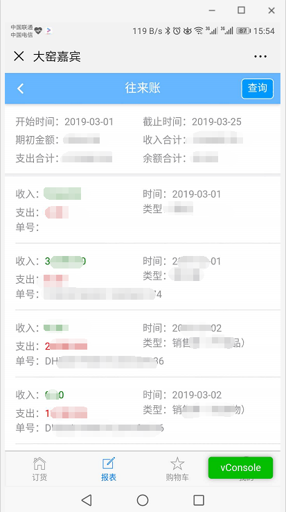 经销商可以在自己的往来账看到,自己的货、款信息。包括预付单、订货单、发货单、退包装物单、处罚单等;