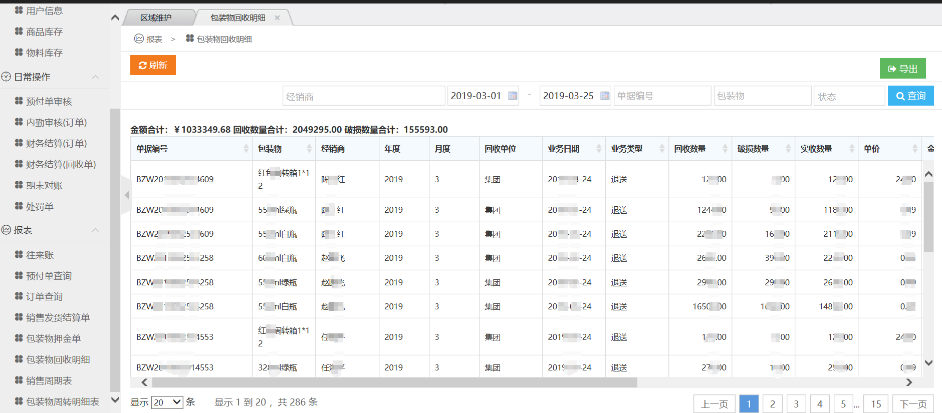 系统可以实现按批次退回包装物,并按出货时的价格,计算退回的金额,然后冲抵下次的订单金额;