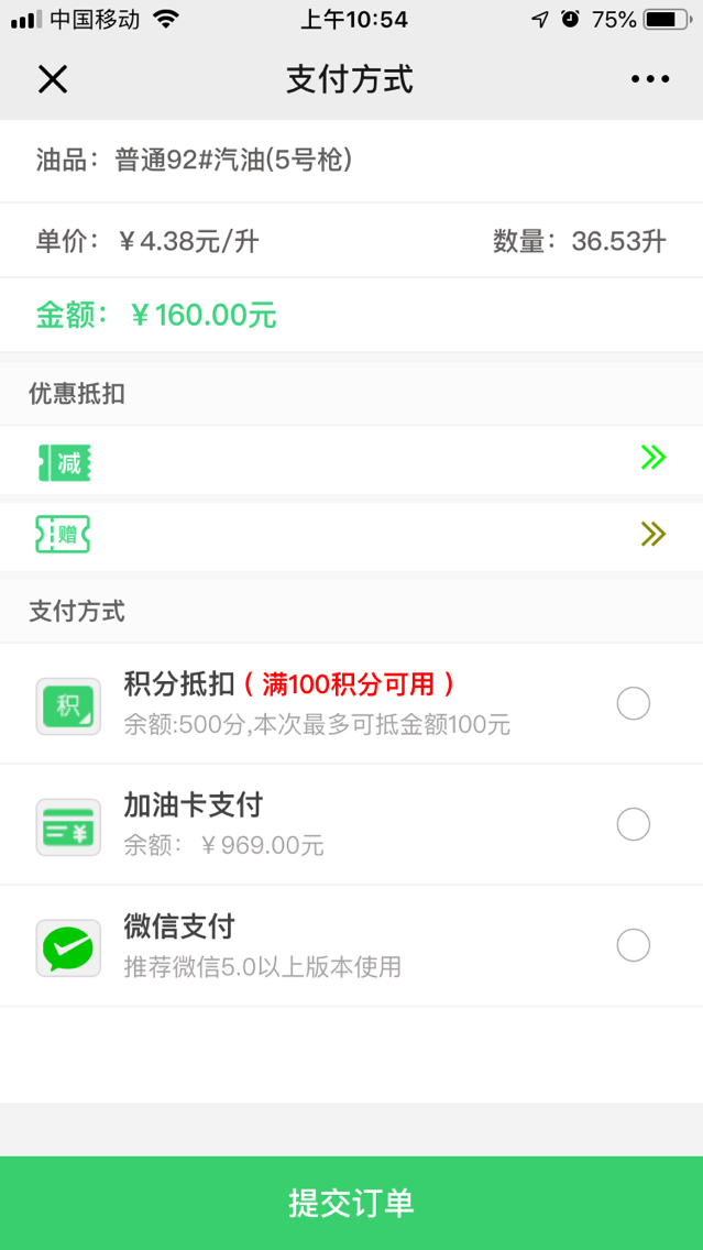 顾客加完油以后,通过扫描加油员手机上生成的二维码付款。顾客可以选择加油站发行的优惠券、折扣券或是历史加油得到积分来支付。
