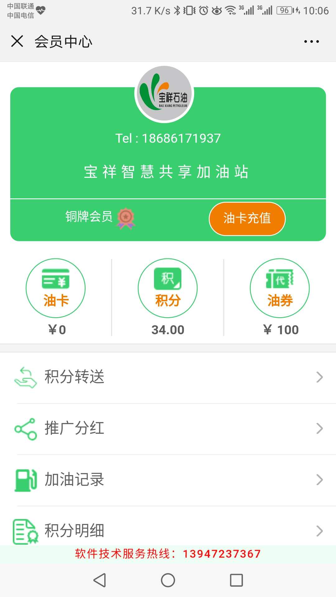 顾客可以在手机端查看自己的代金券、积分,查看今日油价、进行充值等操作