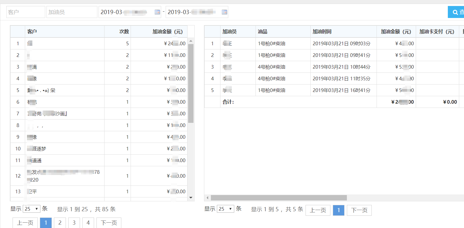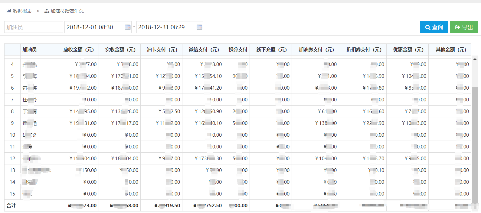 加油员可以在手机端查看自己当日的加油流水,查看自己当月的加油绩效等
