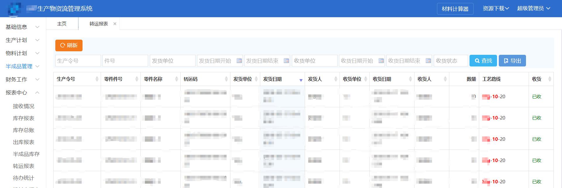 系统通过接入钉钉平台,对生产过程中,原辅材料、半成品、成品的运输过程进行管理。相关人员可以在钉钉端完成,发起转运、转运单分派、接单、物资接收等操作。