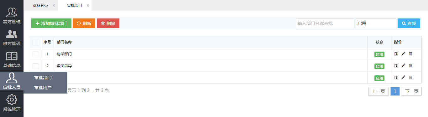 管理员,可以通过系统审核或是添加各方信息,包括供方、审核部门、需求部门等