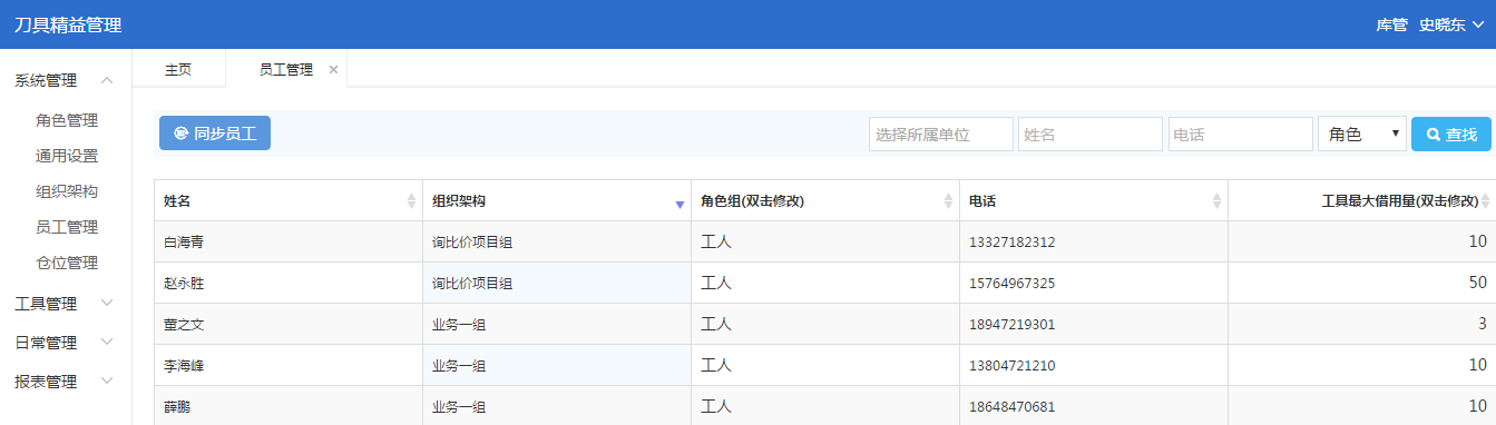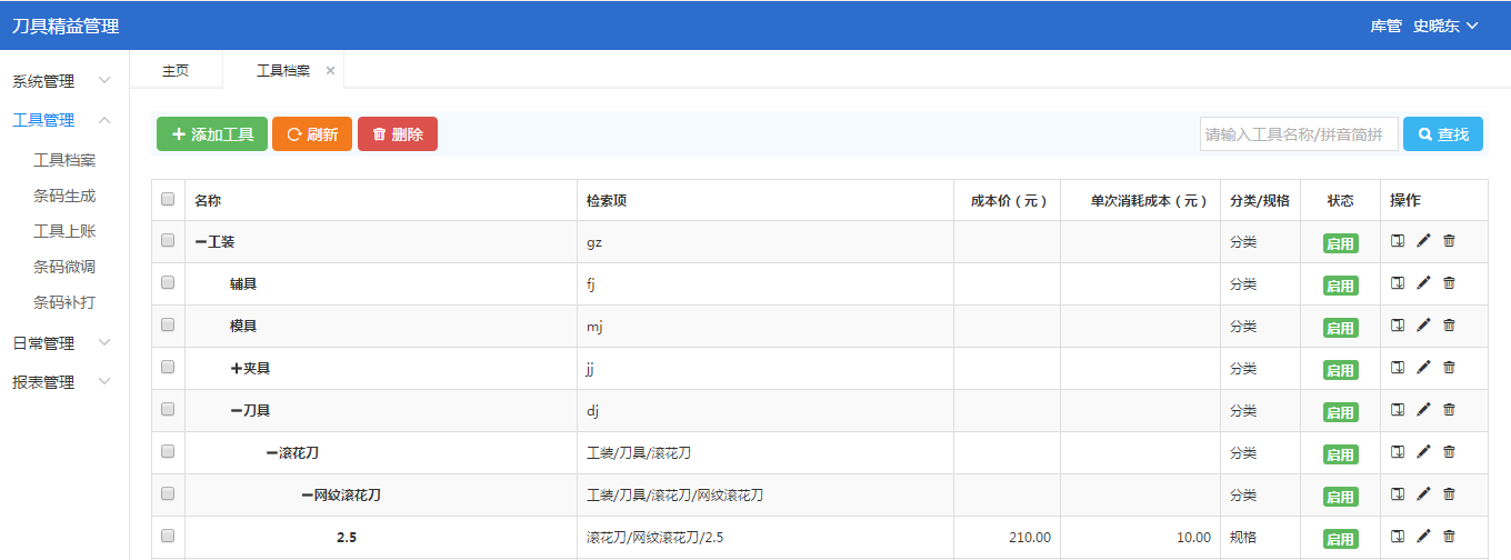 简介:工、刀具精益管理系统,实现对刀具的上账、工人借出、仓库间调拨等工作流程的管理。便于公司管理人员时时掌握工具的在库种类、数量;工人借用的种类及数量;实现对工人借用流程的管理,加快工具的流转速度,提高工具的使用效率;本系统接入钉钉平台,通过钉钉扫码登陆;相关人员可以钉钉中完成相应操作。