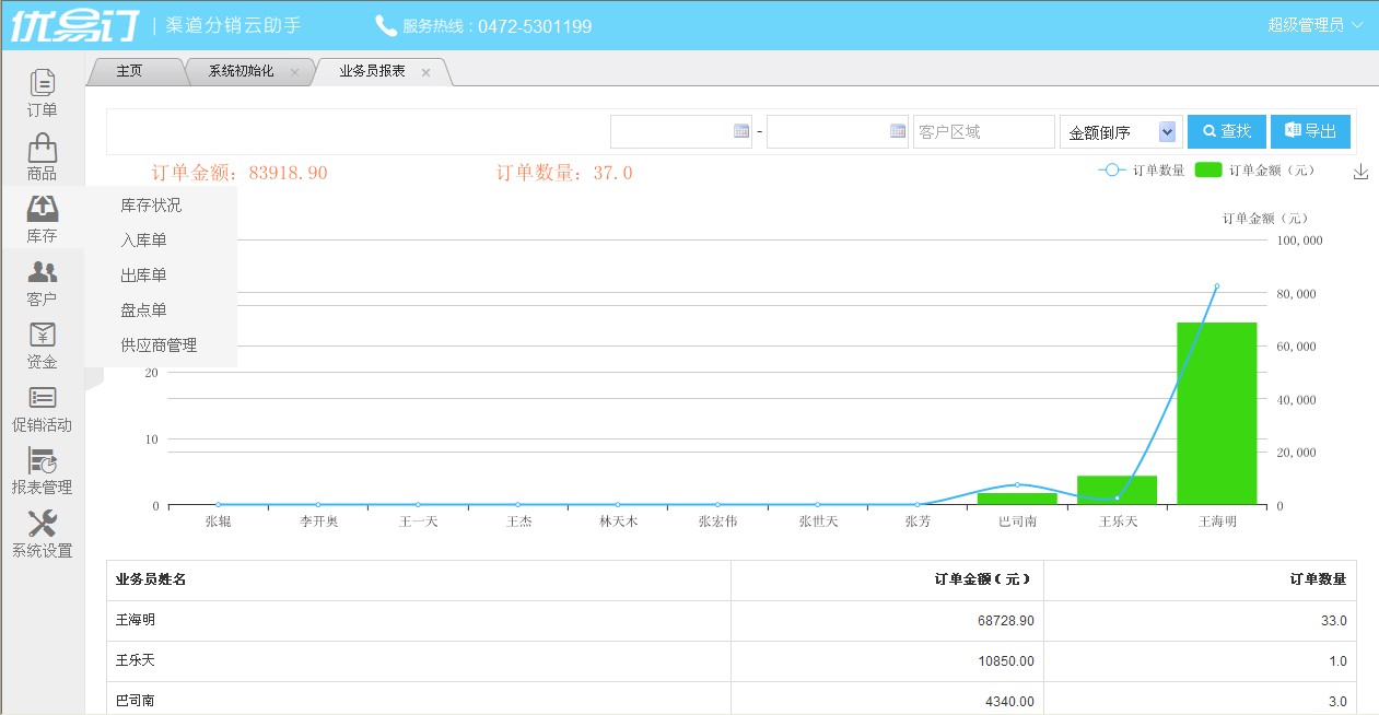 简介: 优易订是一款帮助企业快速构建专属的移动订货电商平台,让分销客户像网购一样订货,支持电脑、手机APP、微信操作,24小时交易不打烊。开拓分销渠道,加速资金回笼,让生意更简单。 帮助企业完成订货协作、商品推介、库存查看、资金支付、账务核对、业务员业绩核算、公司财务管理、渠道沟通等业务环节的紧密协